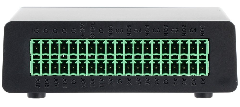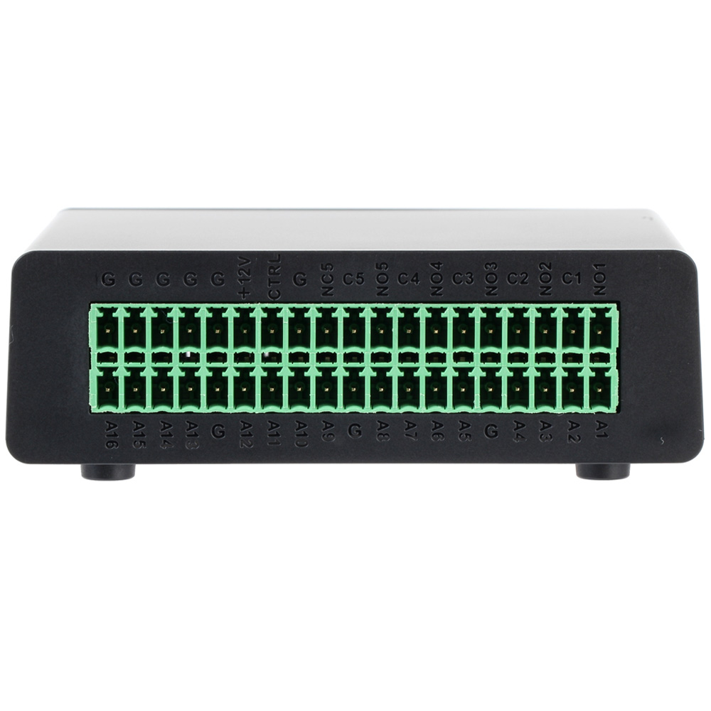 Alamrni ulazno/izlazni modul za DVR uređaje; 16 alarmnih ulaza/6 alarmnih izlaza; Dodavanje modula putem RS485 konekcije; 2-bitno adresiranje; Dimenzije 97.68mm×90.3mm×33mm.