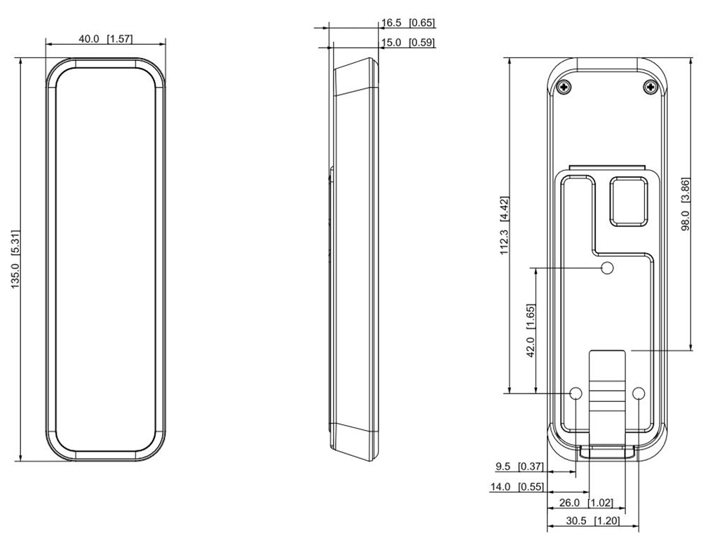 Mifare čitač kartica. RS485 i Wiegand interfejs. 13.56MHz čitač dometa do 5cm. Vreme čitanja <0.1s. LED indikacija. Buzer. IP66 stepen zaštite. Radna temperatura -30°C-+70°C. Napajanje 12V DC / 500mA. Watchdog. Zaštita od prenapona i preopterečenja na svim portovima. Dimenzije 135mm × 40mm × 15mm. Masa 0.16kg. Nazidna montaža. CE.