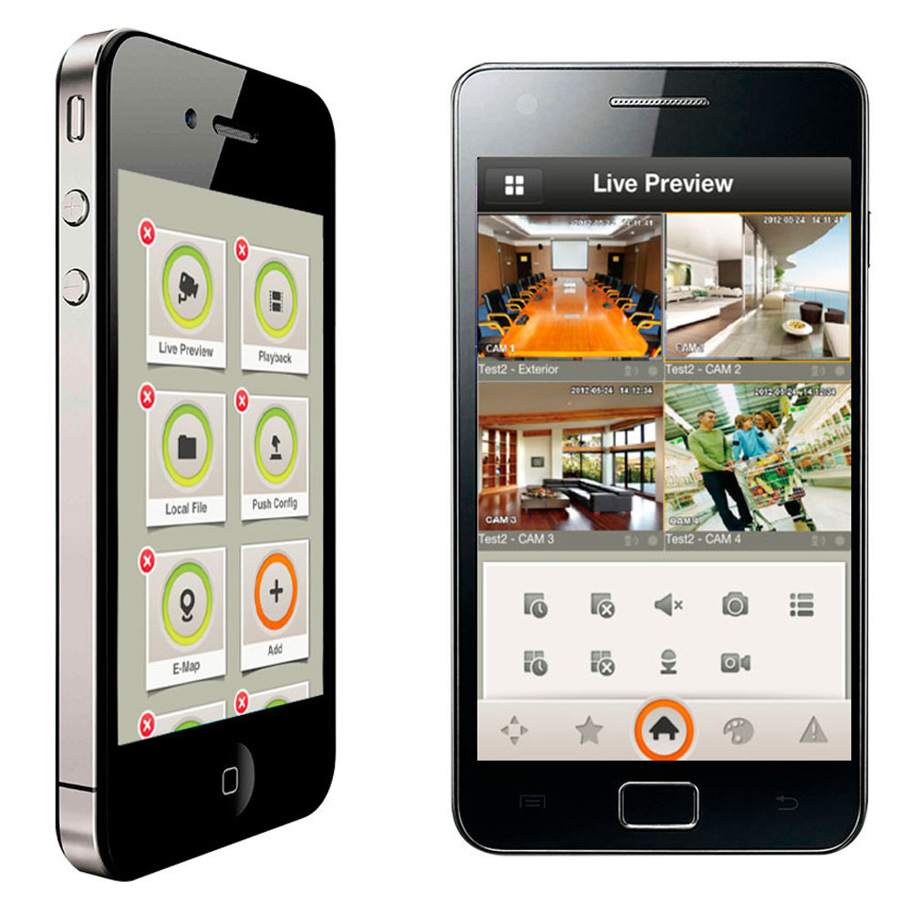 Aplikacija za mobilne platforme (Android, iOS); Prijem poziva, uspostavljanje komunikacije i aktiviranje el. brave; Snapshot i snimanje konverzacije; 1/4/9/16 split prikaz; Za Android 3.0 ili noviji (gDMSS); Za iOS 6.0 ili noviji (iDMSS).
