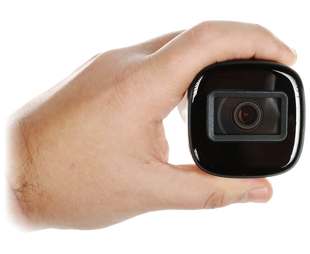 4u1 2MP D/N bullet IC kamera; Cooper serija; Smart IC 30m; Plastično kućište; 2.8mm objektiv; IP67. 4u1 (analogna, HDCVI, AHD, TVI) 2MP bullet IC kamera. 2 Megapixela CMOS. Efektivni broj piksela 1920(H) x 1080(V). Rezolucija 1920×1080@25/30 fps ili 960H. 2.8mm F2.0 fiksni objektiv. Vidni ugao 100°. Opciono 3.6mm ili 6mm (vidni ugao 80° ili 43°). Osetljivost 0.02Lux/F2.0(kolor), 0.002Lux/F2.0(C/B), 0Lux (IC uključ.). True day/night (ICR). Smart IC LE diode dometa cca. 30m. DWDR. BLC. 2D DNR. OSD. Izbor moda rada putem UTC OSD kontrolera ili sa HCVR uređaja. Prenos signala koaksijalnim kablom 75Ω na dužinama do 700m, UTP do 300m. Dimenzije 146.1mm × 70.0 mm × 69.8mm. Masa 150g. Plastično kućište. IP67 sertifikovana. Radna temperatura -40°C~+60°C. Napajanje 12VDc ±30%/2.8W. Sertifikacija CE-LVD: EN 62368-1, CE-EMC: EN 55032. EN 55035.