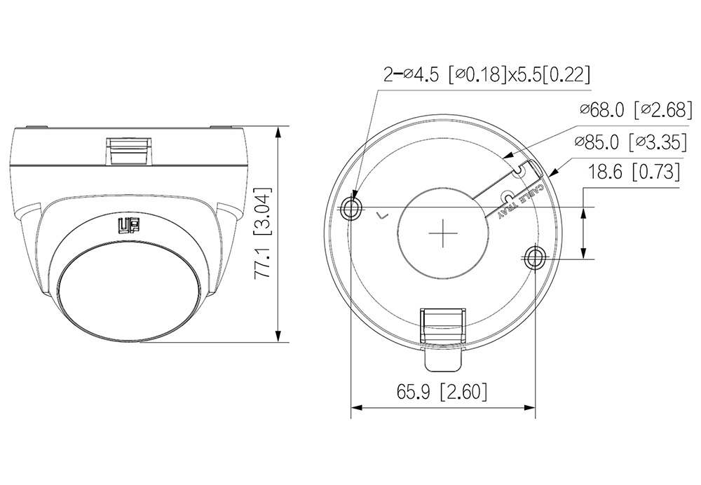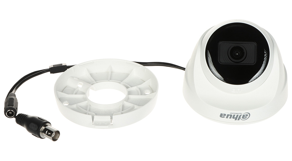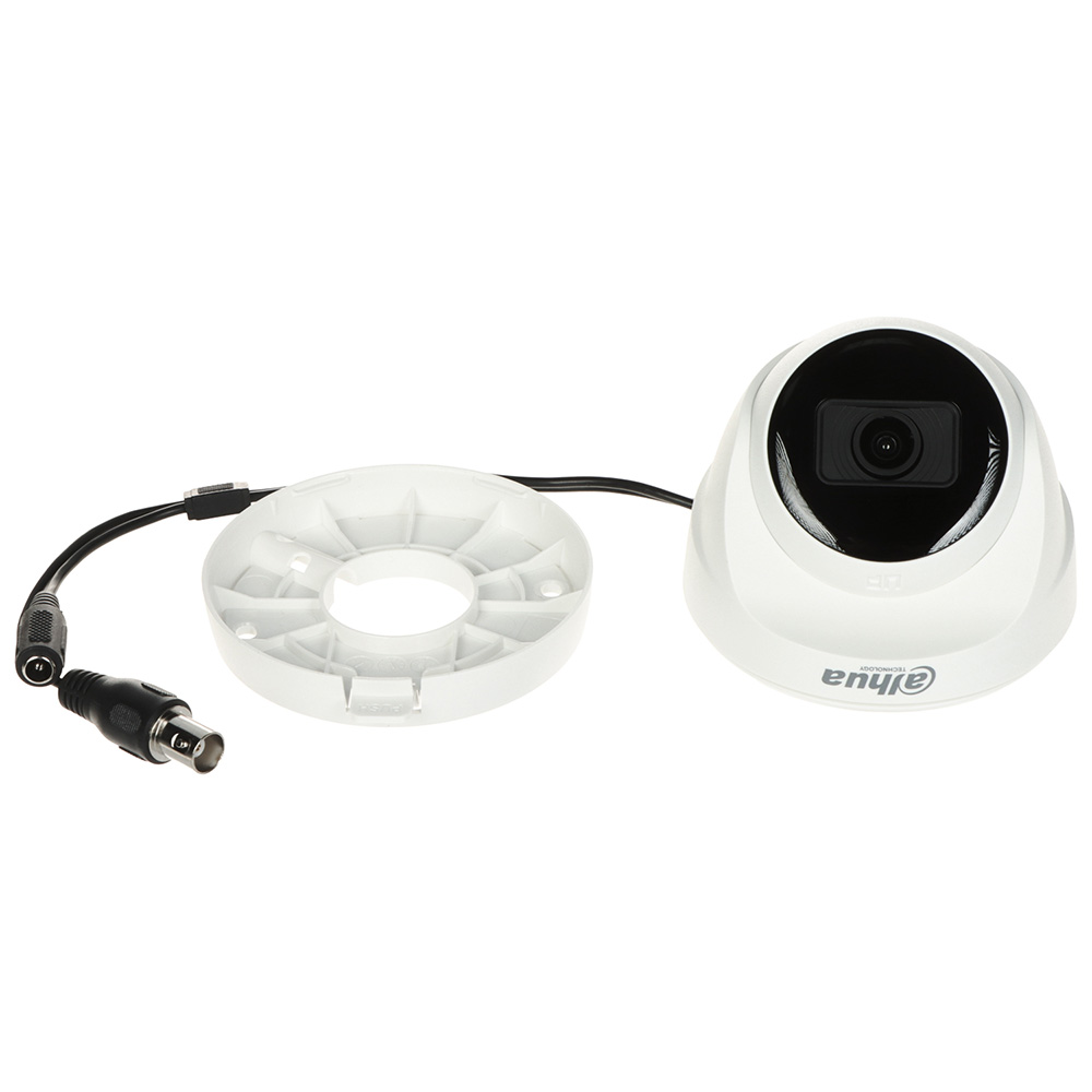 4u1 2MP D/N eyeball IC kamera; Cooper serija; Smart IC25m; Plastično kućište; 2.8mm objektiv. 4u1 (analogna, HDCVI, AHD, TVI) 2MP dome IC kamera. 2 Megapixela CMOS. Efektivni broj piksela 1920(H) x 1080(V). Rezolucija 1920×1080@25 fps ili 960H. 2.8mm F2.0 fiksni objektiv. Vidni ugao 100°. Opciono 3.6mm (vidni ugao 80°). Osetljivost 0.02Lux/F2.0(kolor), 0.002Lux/F2.0(C/B), 0Lux (IC uključ.). True day/night (ICR). Smart IC LE diode dometa cca. 25m. DWDR. BLC. 2D DNR. OSD. Izbor moda rada putem UTC OSD kontrolera ili sa HCVR uređaja. Prenos signala koaksijalnim kablom 75Ω na dužinama do 700m, UTP do 300m. Dimenzije Φ85.0 mm × 77.1 mm. Masa 110g. Plastično kućište. Radna temperatura -40°C~+60C. Napajanje 12VDc ±30%/2.3W. Sertifikacija CE-LVD: EN 62368-1, CE-EMC: EN 55032. EN 55035.