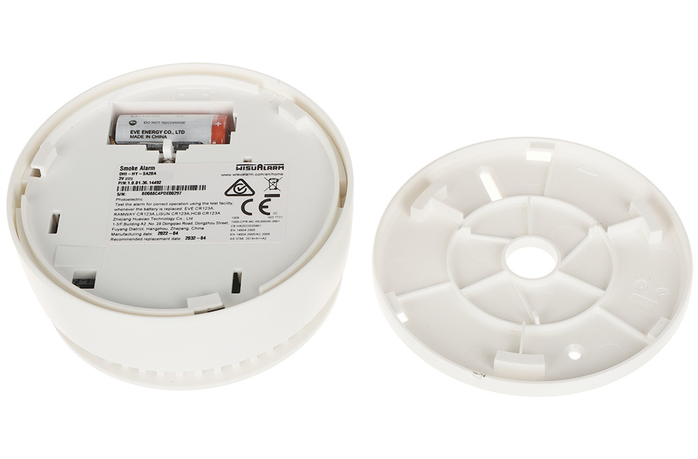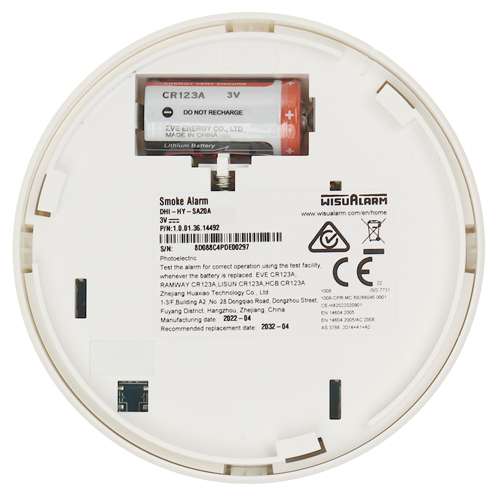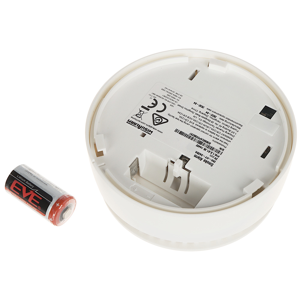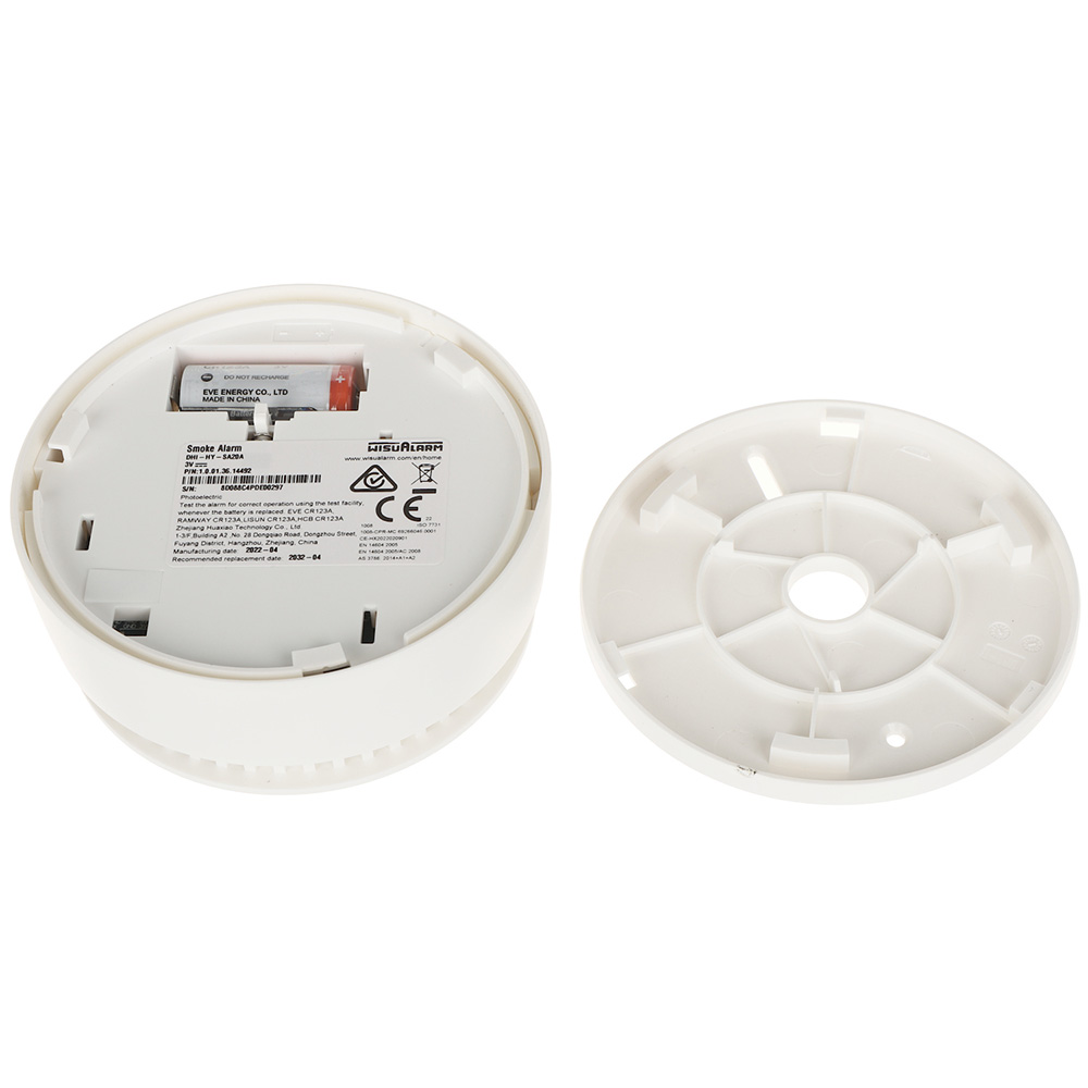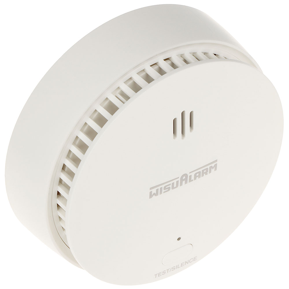 Wisualarm samostalni bežični detektor dima sa fotoelektričkim senzorom tehnologije podeljenog spektra. Vreme uzorkovanja 9 sekundi. LED indikator (crveni / zeleni) i audio alarm: dim, greška, niska baterija. Jačina alarma 85dB(A) na 3 m. Prag odziva alarma: 0.2 dB/m – 0.3 dB/m. Pokrivenost 20m² – 40m² na visini manjoj od 8m (3.28 ft). Test/Silence taster. U kompletu sa 3V CR123A baterijom. Radna Temperatura: -10 °C do +55 °C. Dimenzije φ98mm × H43.1mm. Masa 136g. Montaža na plafon. TÜV i CE sertifikovan, usaglašen sa EN 14604:2005+AC:2008.