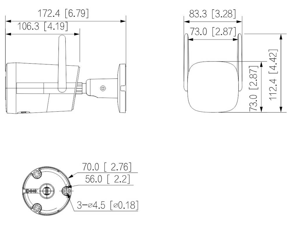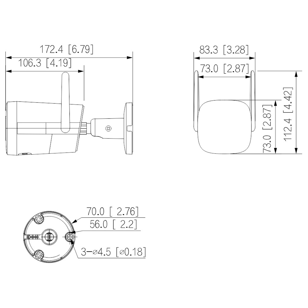 4MP mrežna WiFi kamera u bullet kućištu. 1/3” CMOS sa progresivnim skeniranjem. Color: 0.003Lux / F2.0 (Color), 0 Lux Ilumination on. Maksimalna rezolucija 2560×1440. Fiksna optika 2.8mm. Kompresija H.265+/H.264+. Nivo zaštite IP67. DWDR. Domet IC dioda 30 metara. Integrisan mikrofon i zvučnik. Slot za microSD karticu do 256GB. 12v napajanje. Odgovarajuća dozna je PFA134. Nosač za banderu je PFA152-E. Materijal: Metal i plastika.
