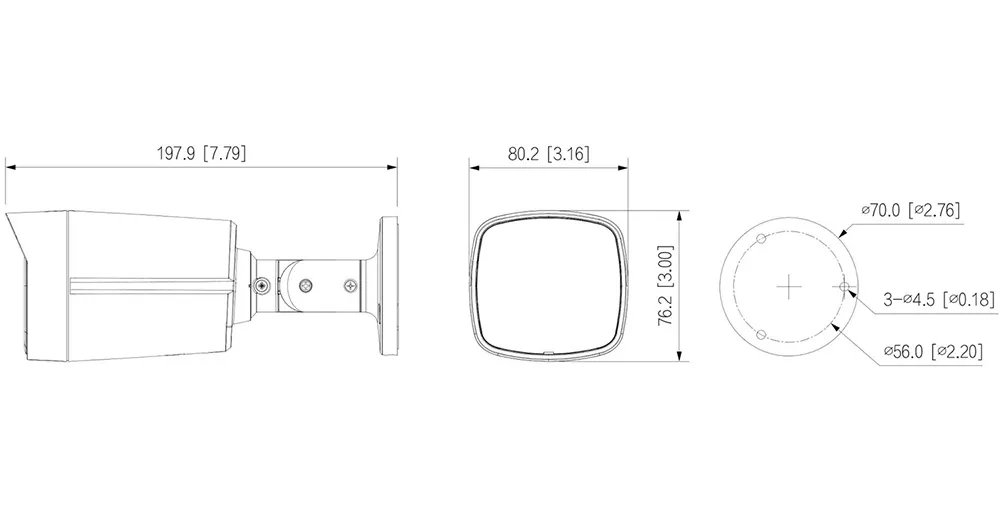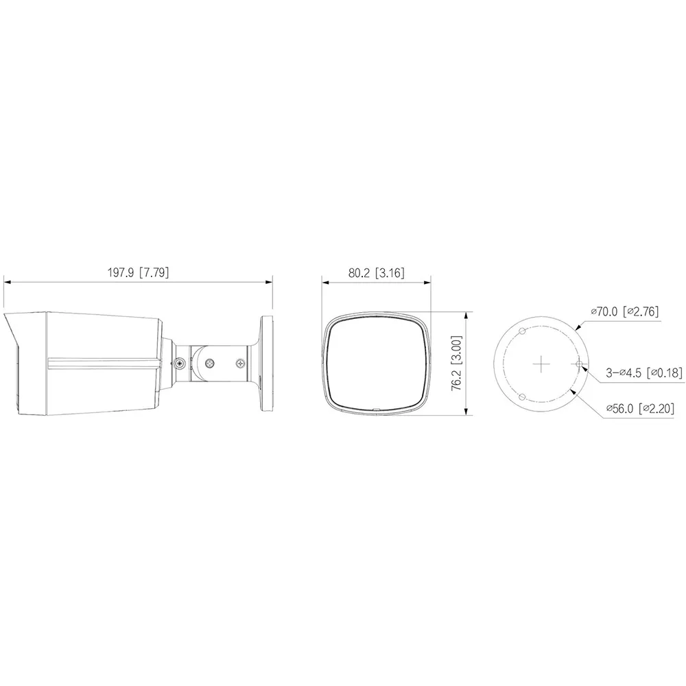 AI IP 8MP WizColor bullet kamera; WizSense serija; AI-ISP; Starlight; 2.8mm; Beli LED 50m; AI analitika; SMD+; Mikrofon; Micro SD slot; Metalno kućište; IP67. AI IP bullet kamera 8MP. WizColor+AI-ISP tehnologija. 1/1.8” CMOS, progresivno skeniranje (3840×2160 piksela). Starlight. Osetljivost 0.0004Lux /F1.0. Pametne bele LE diode dometa cca. 50m. Objektiv 2.8mm (Vidni ugao 110° horizontalno), opciono 3.6mm (93°), 6mm (57°). Fiksni iris. BLC /HLC /WDR 120dB. 3D DNR, LDC. ROI (do 4 zone). Masking (do 4 zone). AI Analitika – detekcija prelaska definisane linije i ulaska/izlaska u definisani region (uz detekciju ljudi i vozila) – SMD+. Detekcija pokreta (do 4 zone). Smart H.265+ /H.265 /Smart H.264+ /H.264 /H.264H /H.264B /MJPEG kompresija. Rezolucije 8M, 6M, 5M, 4M, 3M, 2304×1296, 1080P, 1.3M, 720P, D1, VGA, CIF. Dual Stream. Do 20fps u 3840 x 2160, do 25/30fps 2688 x 1520 i nižim rezolucijama. Bit rate H.264: 32 kbps–8192 kbps, H.265: 12 kbps–8192 kbps. Inkorporiran mikrofon. Audio kompresija G.711a, G.711Mu, PCM, G.726. RJ-45 (10/100Base-T) mrežni port. Protokoli IPv4, IPv6, HTTP, TCP, UDP, ARP, RTP, RTSP, RTCP, RTMP, SMTP, FTP, SFTP, DHCP, DNS, DDNS, QoS, UPnP, NTP, Multicast, ICMP, IGMP, NFS, PPPoE, P2P, Bonjour, Auto Registration. Interoperabilnost: ONVIF (Profile S & Profile G & Profile T), CGI. SDK i API. Skladištenje: FTP, SFTP, MicroSD (do 256 GB), NAS. Metalno kućište. Potrebno napajanje 12VDc ili PoE (802.3af), potrošnja do 7.4W. Dimenzije 197.9 mm × 80.2 mm × 76.2 mm. Masa 0.57kg. IP67 sertifikovana. Radna temp. -40°C~+60°C. Sertifikacija CE-LVD: EN62368-1, CE-EMC: Electromagnetic Compatibility Directive 2014/30/EU.