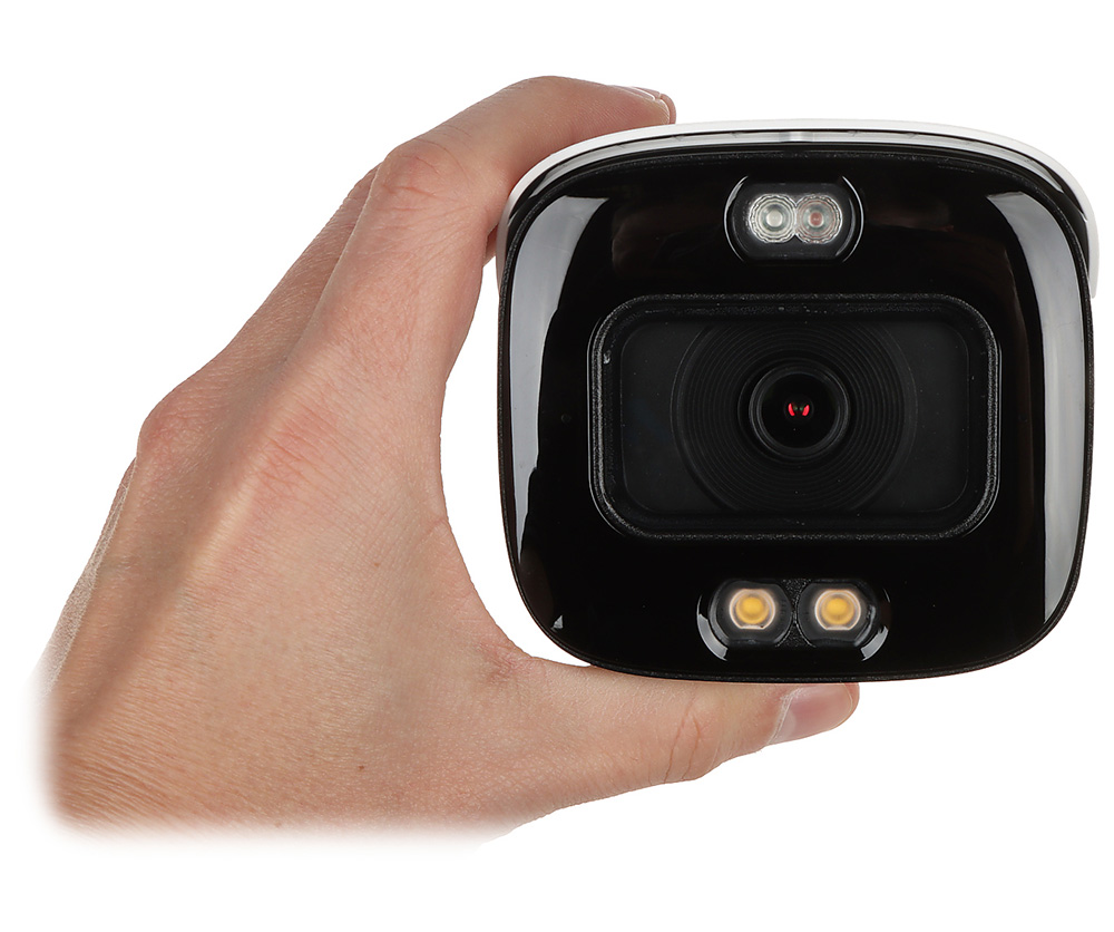 5MP TiOC 3.0 bullet kamera; Hibridni iluminatori (IC + belo svetlo) + AI analitika + aktivno odvraćanje; IC + Beli LED 30m; 2.8mm; AcuPick; Micro SD slot; Alarmni ulaz/izlaz; Audio ulaz/izlaz; 2 mikrofona; IP67. 5MP IP TiOC 3.0 bullet kamera. 1/2.7” 5MP CMOS, progresivno skeniranje. Efektivni broj piksela 2880 (H) × 1620 (V). Osetljivost 0.003Lux @F1.0 (kolor), 0.0003 lux@F1.0 (C/B), 0Lux (iluminatori aktivni). Fiksni objektiv 2.8mm F1.0, vidni ugao 97° horizontalno. Opciono 3.6mm (78°). IC LE diode dometa cca. 30m. Bela LE dioda dometa cca. 30m. AI analitika (napredna zaštita perimetra) – detekcija prelaska definisane linije i ulaska/izlaska u definisani region uz detekciju ljudi i vozila, SMD 4.0. AcuPick. Pametna pretraga (uz odgovarajuće Smart NVR). Plavi i crveni upozoravajući LED i zvučnik – funkcija aktivnog odvraćanja. AI H.265, AI H.264, Smart H.265, Smart H.264, H.265+, H.264+, H.264H, H.264B, MJPEG kompresija. Trostruki stream. Podržane rezolucije do 5M (2880 × 1620), frame rate do 20fps u 2880 × 1620/2960 × 1668, do 25/30fps u 2688 × 1520 i nižim rezolucijama. Bitrate 3kbps–16384 kbps. BLC, HLC, 120dB WDR, SSA, AI SSA, 3D DNR, ROI, Defog. Ugrađena 2 mikrofona. Micro SD slot (do 256GB). Audio ulaz/izlaz. Alarmni ulaz/izlaz. RJ45 10/100 Base-T mrežni port. Protokoli: IPv4, IPv6, HTTP, TCP, UDP, ARP, RTP, RTSP, RTCP, RTMP, SMTP, FTP, SFTP, DHCP, DNS, DDNS, QoS, UPnP, NTP, Multicast, ICMP, IGMP, NFS, SAMBA, PPPoE, SNMP. Interoperabilnost: ONVIF (Profile S/Profile G/Profile T), CGI, Milestone, Genetec, P2P. Kućište kombinacija metala i plastike. Dimenzije 288.4mm × 94.4mm × 84.7mm. Masa 1kg. IP67 stepen zaštite. Opseg radne temperature –40°C do +60°C. Potrebno napajanje 12Vdc/PoE (802.3af), do 8.8W. CE-LVD: EN 62368-1. CE-EMC: Electromagnetic Compatibility Directive 2014/30/EU.
