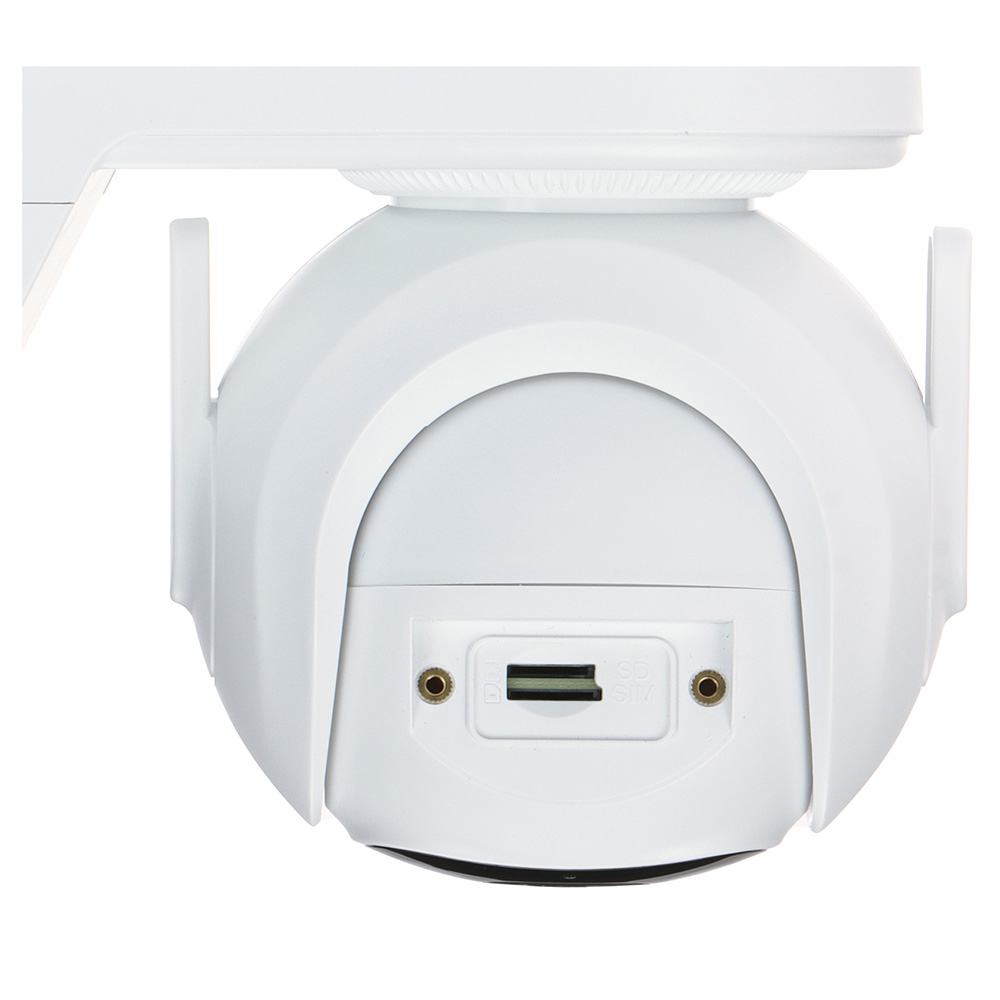 KIT IP 4G 4MP PT kamera sa hibridnim iluminatorima, baterijom i solarnim panelom; Wireless serija; Smart IC 30m; Beli LED 30m; Plavo-crveni LED; Aktivno odvraćanje; PIR; AOV; AI detekcija; Mikrofon; Zvučnik/Sirena; RJ45; MicroSD; IP66. AI IP 4G 4MP PT kamera, IC + Beli LED. 1/3” CMOS progresivno skeniranje. Efektivni broj piksela 2560×1440. Fiksni objektiv 3.6mm/F1.6. Vidni ugao 78.4° horizontalno. Opseg horizontalne rotacije 0~360°, vertikalne -60~0°. IC LE diode dometa 30m. Bele LE diode dometa do 20m, Smart dual light. 3 moda rada iluminatora (Pametni, IC-C/B ili Full Color – belo svetlo). PIR dometa do 12m (na visini od 2.5m) ili 8m (na visini od 2m). Plavo-Crveni LED – aktivno odvraćanje. Svetlosni senzor. Rezolucije 2560×1440, 640×360. Do 15fps u svim rezolucijama. H.265 kompresija. Bitrate H.265: 32 kbps–4096 kbps. WDR. Detekcija pokreta (4 zone), Detekcija ljudi i vozila, Detekcija jačine zvuka. Inkorporiran mikrofon i zvučnik – dvosmerni audio. RJ-45 (10/100Mbps base-T) mrežni port. 4G FDD-LTE: B1/B3/B5/B7/B8/B20/B28, Power class 3: 23dBm ±2.7dB. Dual Antena. Inkorporirana litijumska baterija 68Wh. Skladištenje MicroSD (do 512GB). DMSS aplikacija za iOS i Android. Montaža na zid ili plafon. Kućište od plastike. Radna temperatura -20°C~+50°C. Dimenzije 284 mm × 172 mm × 360 mm, masa 1.055kg. Potrošnja do 1.2W. IP66 stepen zaštite. U kompletu sa napojnim kablom, nosačem, vodootpornim konektorom, montažnim priborom. Sertifikacija CE-LVD: EN62368-1, CE-EMC: Electromagnetic Compatibility Directive 2014/30/EU, CE-RED: Radio Equipment Directive 2014/53/EU.