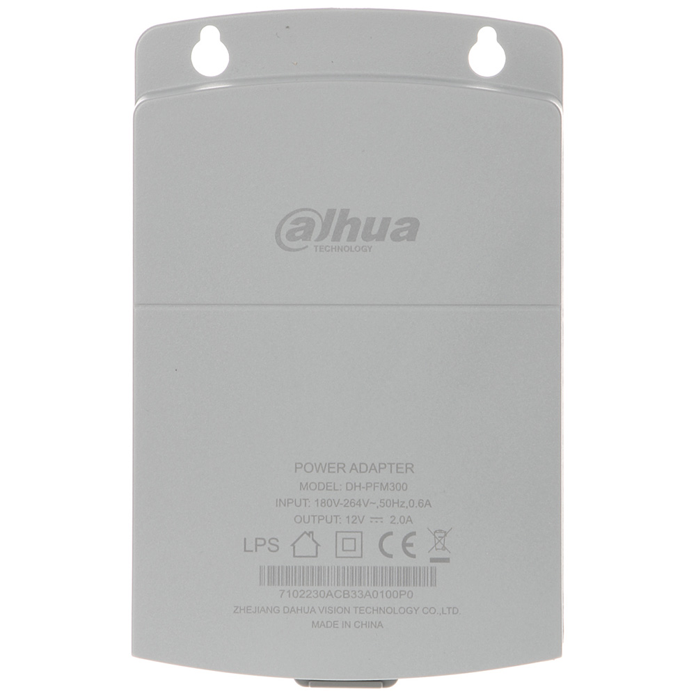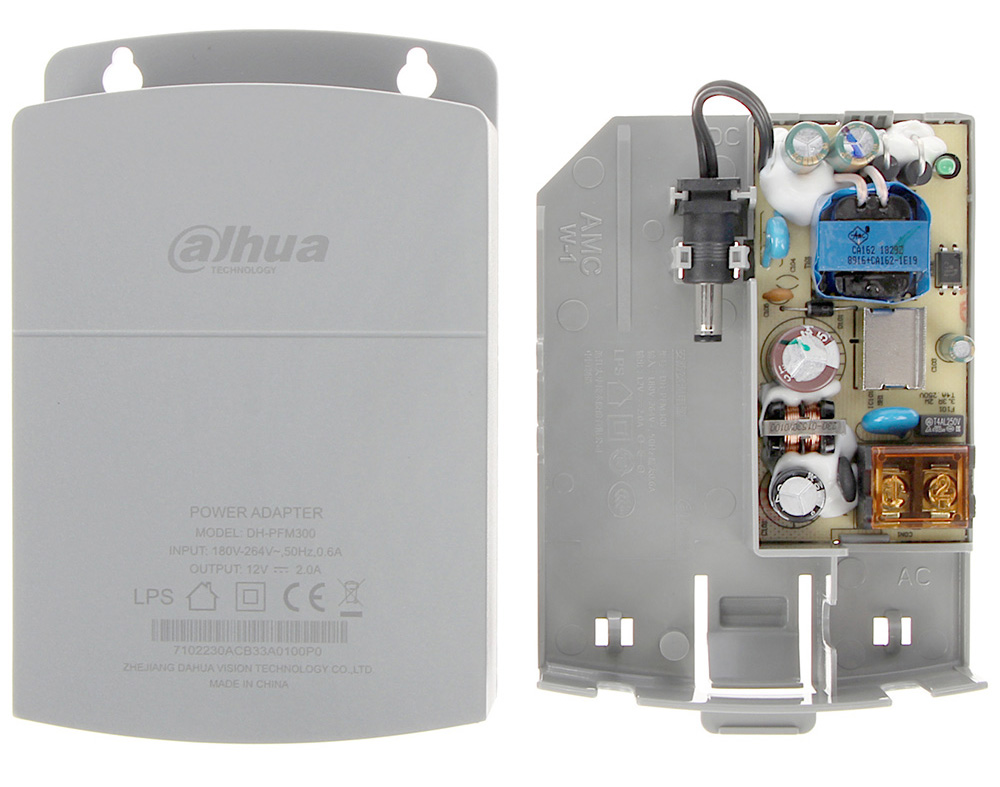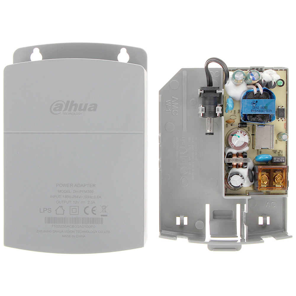 Dahua napojna jedinica 220VAc /12 VDc 2A; Dimenzije 88mm x 37mm x 138mm; Masa 160g; Radna temperatura – 30°C~+70°C; Prostor za smeštaj konekcija i baluna; Za nazidnu montažu; Od V-0 negorive sive plastike.