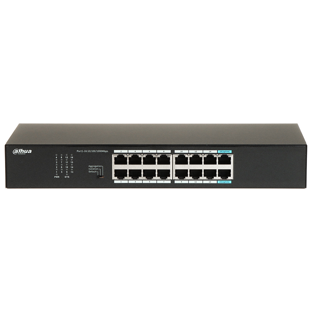 16-portni gigabitni switch; Layer 2. 16x 10/100/1000 Base-T. Layer 2. Switching Capacity 32G. Packet Forwarding Rate 23.808Mpps. Packet buffer 8.4 Mbit. Jumbo frame 12K Bytes. MAC table size 16K. komunikacioni standardi IEEE 802.3, IEEE 802.3u, IEEE 802.3x, IEEE 802.3ab, IEEE 802.3ad. Static Link Agregation. Port Feature IEEE 802.3x traffic control/flow control. Port isolation. Full Line-rate Forwarding. Dimenzije 235 mm × 103 mm × 27 mm. Masa 1.36kg. Napajanje 12VDc. Zaštite od elektrostatičkog pražnjenja: 8kV vazdušno, kontaktno 6kV. Zaštita od udara groma, Common mode 2kV, Differential mode 0.5 kV. Dimenzije 294 mm × 119 mm × 44 mm. Metalno kućište. Masa 0.74kg Opseg radne temperature –10 °C to +55 °C.