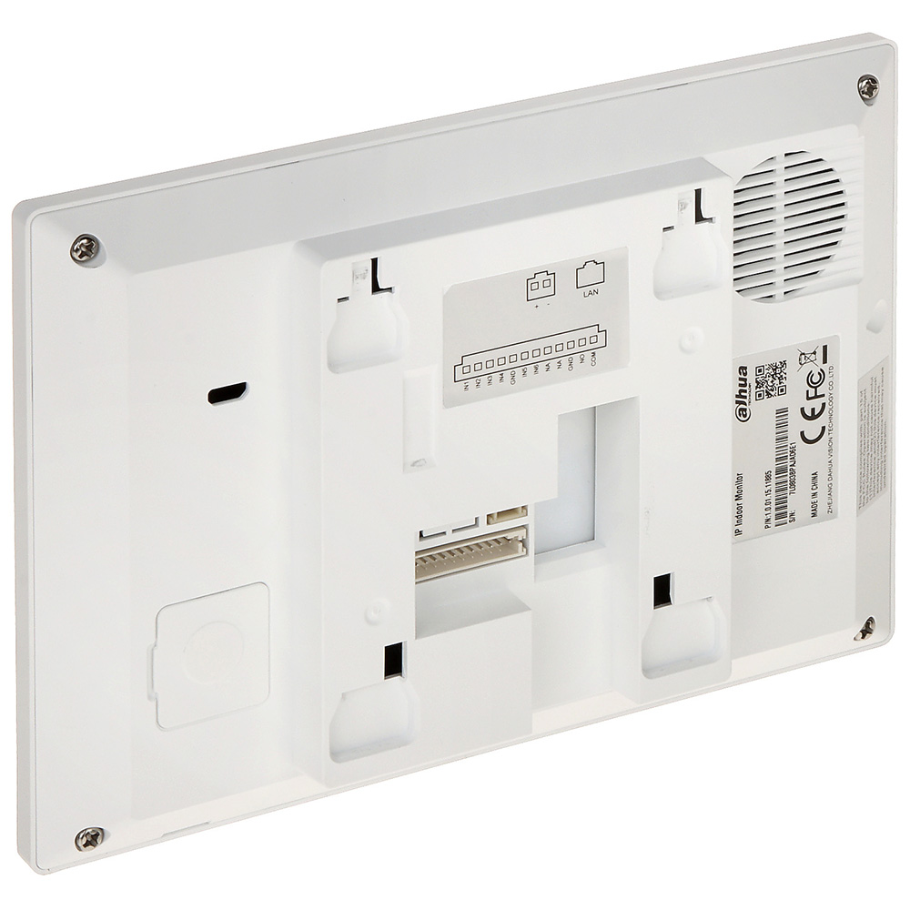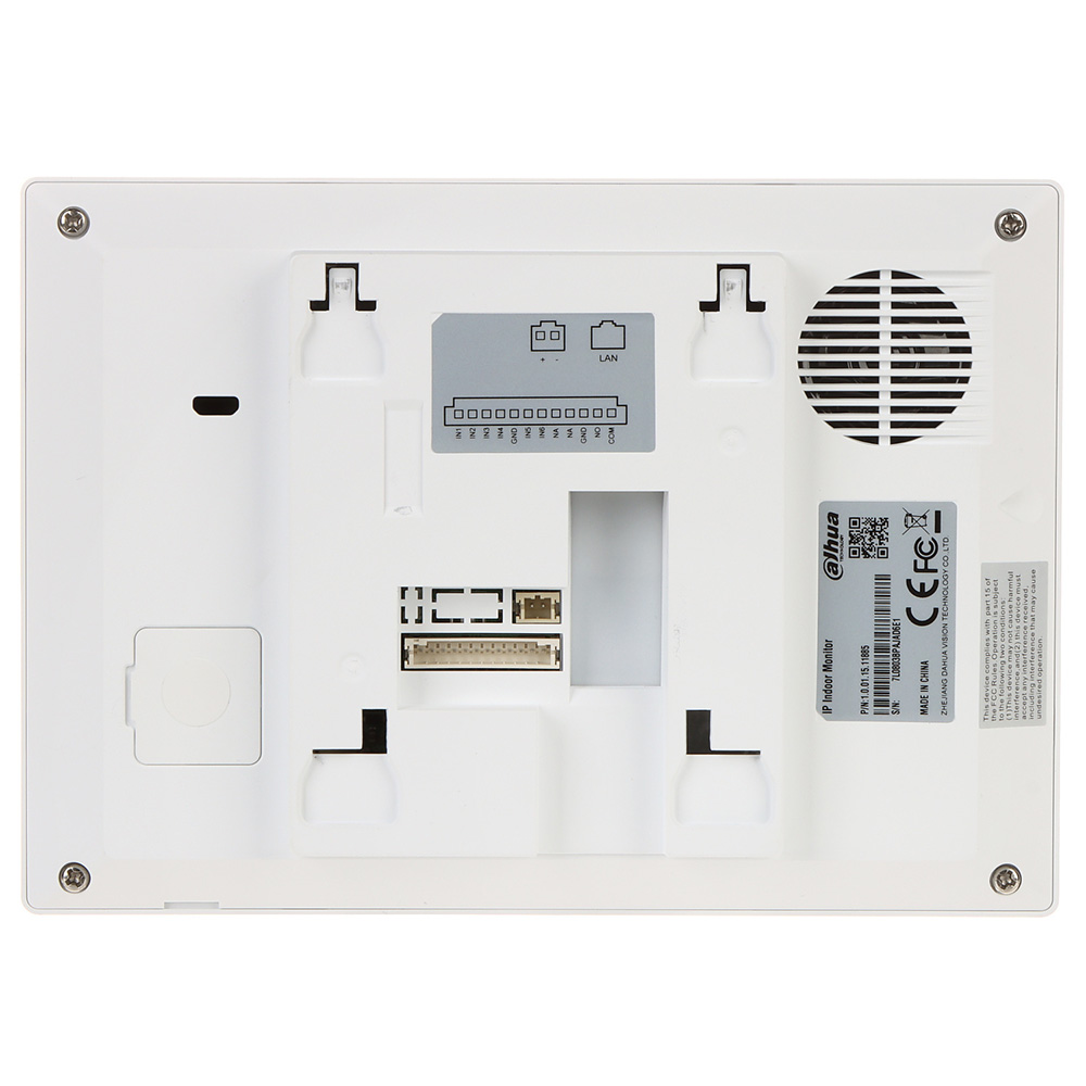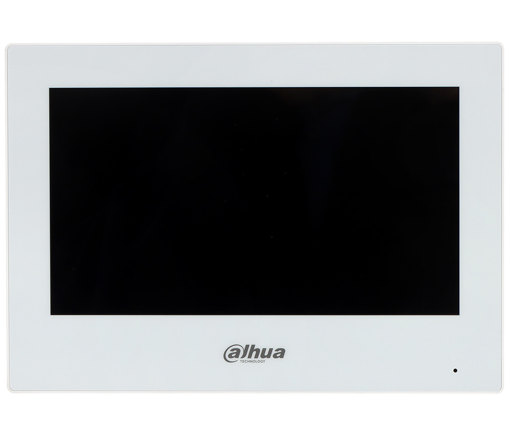 IP SIP 2.0 video intercom hands-free monitor, touch-screen, WiFi. 7″ TFT LCD, kapacitivni touch-screen. Rezolucija 1024×600 piksela. Interna komunikacija – pozivanje kroz imenik. H.264/H.265. G.711a, G.711U, PCM. Video monitoring glavnih i sekundarnih panela. Monitoring do 32 Dahua IP kamere. Kontrola el. brave. SOS funkcija – poziv portiru. DND (Do Not disturb). Dimenzije 189.6 mm × 134.6 mm × 26.0 mm. 1×10/100Mbps Ethernet port, RJ45. Wi-Fi, IEEE802.11b/802.11g/802.11n, 2.4 GHz, WPA/WPA2. WPA-PSK/WPA2-PSK. 6 alarmnih ulaza, 1 alarmni izlaz. Ulaz za zvono (koristi se jedan od alarmnih ulaza). Funkcija alarmne tastature/centrale. Potrebno napajanje 12VDc direktno ili standardni PoE, 6W. Bele boje.
