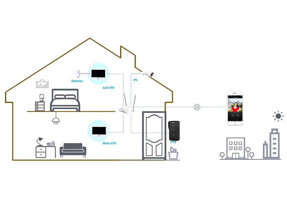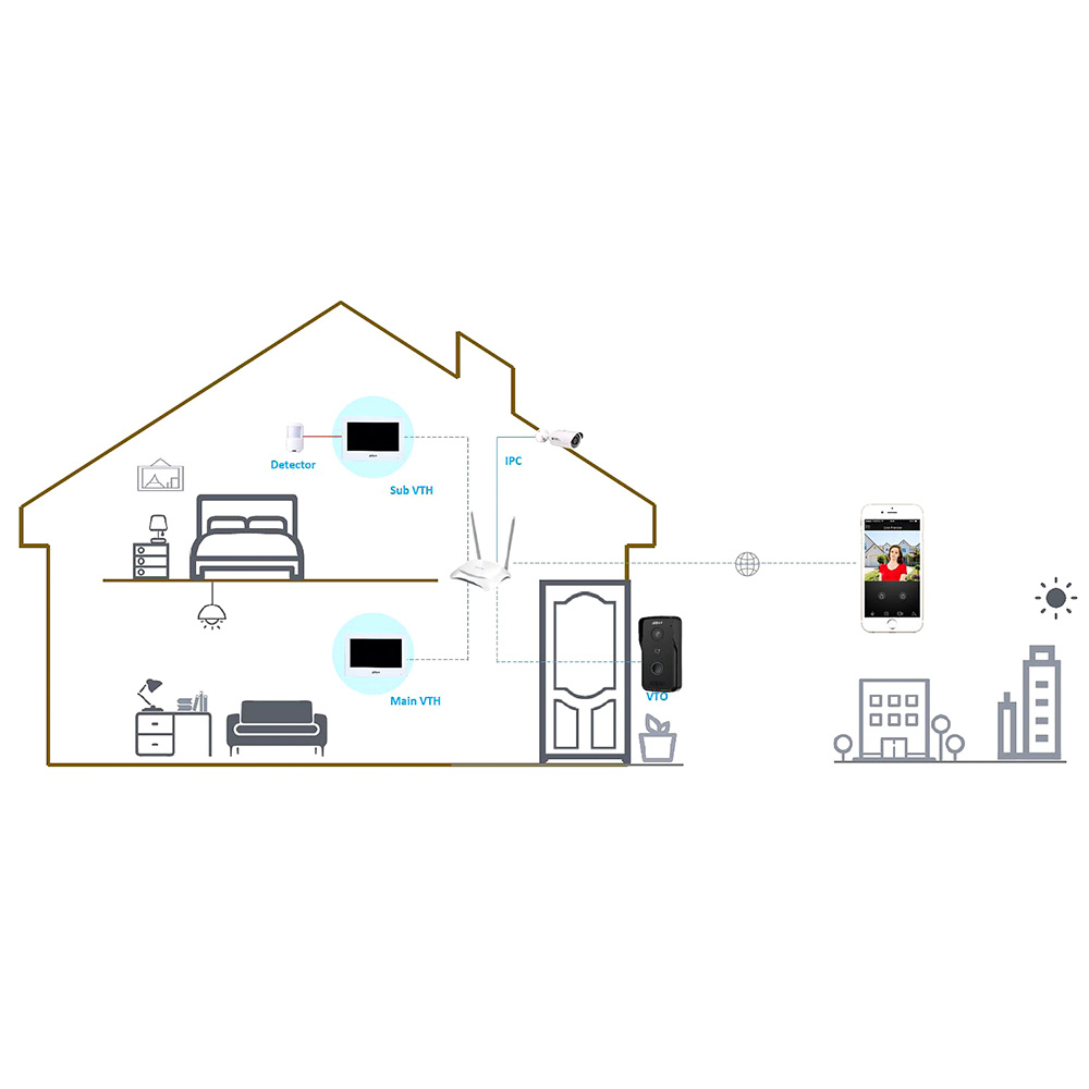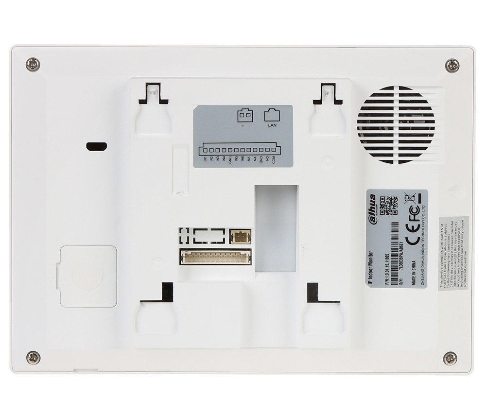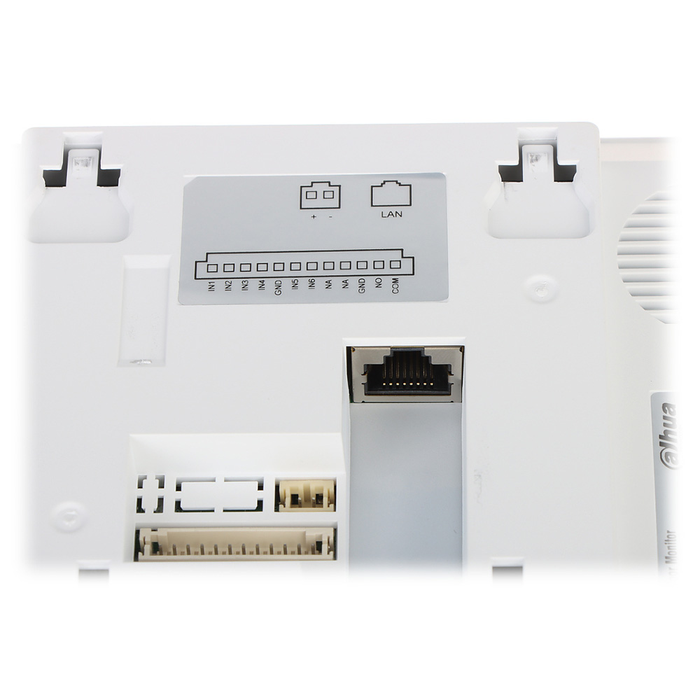 IP SIP 2.0 video intercom hands-free monitor, touch-screen, WiFi. 7″ TFT LCD, kapacitivni touch-screen. Rezolucija 1024×600 piksela. Interna komunikacija – pozivanje kroz imenik. H.264/H.265. G.711a, G.711U, PCM. Video monitoring glavnih i sekundarnih panela. Monitoring do 32 Dahua IP kamere. Kontrola el. brave. SOS funkcija – poziv portiru. DND (Do Not disturb). Dimenzije 189.6 mm × 134.6 mm × 26.0 mm. 1×10/100Mbps Ethernet port, RJ45. Wi-Fi, IEEE802.11b/802.11g/802.11n, 2.4 GHz, WPA/WPA2. WPA-PSK/WPA2-PSK. 6 alarmnih ulaza, 1 alarmni izlaz. Ulaz za zvono (koristi se jedan od alarmnih ulaza). Funkcija alarmne tastature/centrale. Potrebno napajanje 12VDc direktno ili standardni PoE, 6W. Bele boje.