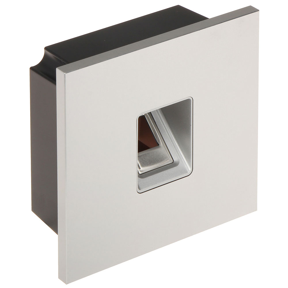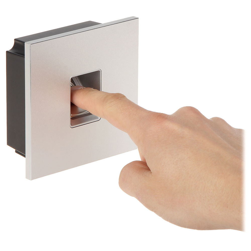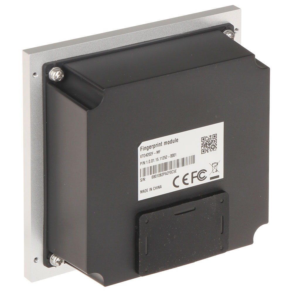 Modul sa čitačem otiska prsta. Do 3000 otisaka. Za pozivne panele serije 4000. Aluminijumski. Dimenzije 100mm ×100mm ×38.5mm. IP65 stepen zaštite. IK07 otpornost. Radna temperatura -20°C to +60°C. Napajanje 5VDc iz modula kamere. Potrošnja 1W.
