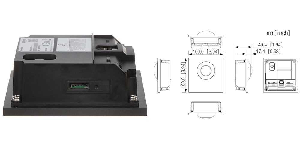 SIP video interfonski modul sa kamerom i mikro-zvučnikom. Za pozivne panele serije 4000. CMOS Low illumination 1/2.9″ 2MP 168.6° fisheye kamera. WDR 120dB, 3D DNR. SIP, UDP, TCP, IPv4, DNS, RTSP, UPnP, P2P, RTP. H.265/H.264 video kompresija. PCM, G.711A, G.711U audio kompresija. Alu. kućište. Digitalna komunikacija. Aktiviranje brave. Auto Snapshot. Ostavljanje audio/video poruka. Web interface. RS485 port. Alarmni ulaz. Izlaz 12VDc 600mA. REX ulaz. Ulaz za status vrata. NC/NO rele za el. bravu. 10/100Mbps Ethernet i 2-žilni port. Tamper. Napajanje 12 VDc eksterno ili putem 2-žilnog IP ili PoE. Dimenzije 100mm×100mm×49.30mm. Od aluminijuma. IP65 stepen zaštite. IK07 otpornost. Radna temperatura -30°C to +60°C. Potrošnja 12W. Dimenzije 100mm×100mm×49.30mm. Masa 0.43kg. Crne boje.