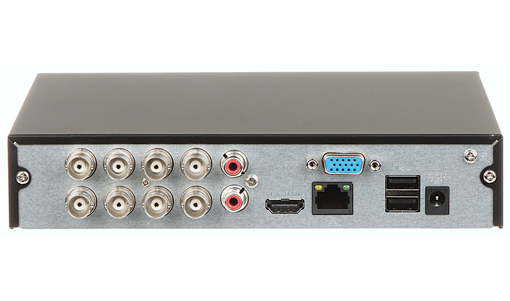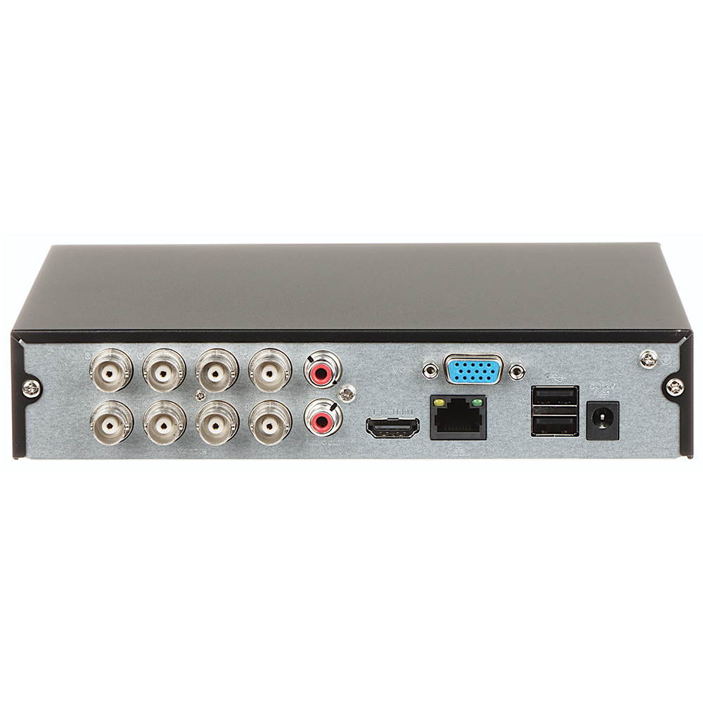 8+2 kanalni penta-brid, 130fps@1080N, mini metalno kućište, 1X audio ulaz/izlaz, 1X SATA, HDMI + VGA, network, SMD+. 8+2 kanalni stand-alone penta-brid DVR (analog + HDCVI + AHD + TVI + IP). WizSense serija. SMD+ detekcija pokreta na do 4 kanala. AI Coding /H.265+ /H.265 /H.264+ /H.264 video kompresija. G.711A, G.711U, PCM audio kompresija8 video ulaza. VGA izlaz. HDMI izlaz. 1 audio ulaz/1 izlaz. USB x2 (USB 2.0) – za lokalni backup i miš. Rezolucija/frame rate za snimanje po kameri: za prvi kanal – 1080N/720P/960H/D1/CIF (1~25/30fps), za ostale kanale 1080N/720p(1 fps–15 fps), 960H/D1/CIF/(1 fps–25/30 fps). Rezolucija prikaza 1280×720 do 1920×1080. Dual stream. 1 SATA port – HDD do 6TB. Network port 10/100Mbps. CMS software (DSS). Web pristup. Software za iOS i Android. P2P podrška. Podržava 2 dodatne IP kamere (rezolucija do 6MP, bitrate do 40Mbps) ili do 10 IP kamera. Dimenzije Cooper 1U, 198mm ×202.9mm ×41.5mm (W×D×H). Masa 0.62kg. Napajanje 110-240VAc preko pril. adaptera 12VDc 1.5A. CE: CE-LVD: EN 60950-1/IEC 60950-1. CE-EMC: EN 61000-3-2. EN 61000-3-3. EN 55032. EN 50130. EN 55024.